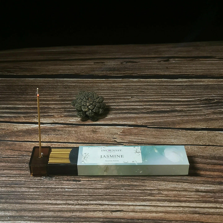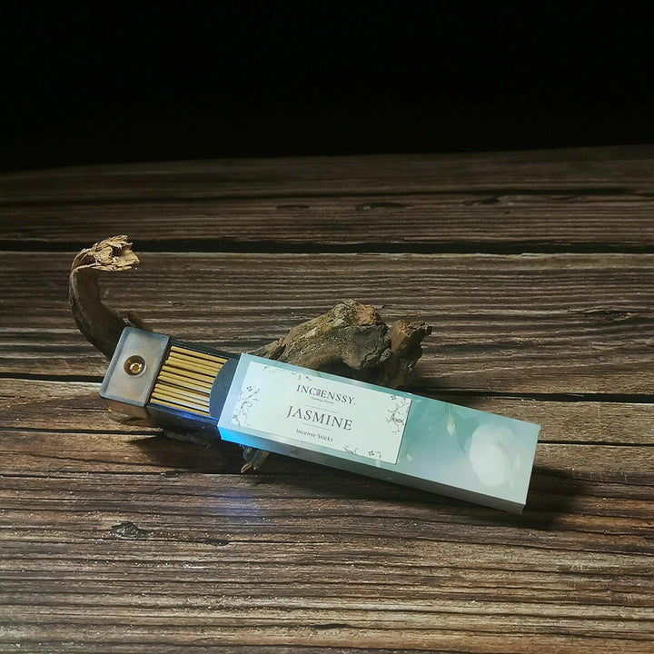 Cold-enfleurage jasmine with Vietnamese Kynam agarwood, rolled into 10.5cm micro sticks. The short, convenient package comes with its own incense stick to fit in your purse or keychain. Ignites without holder to emit crystalline "dewy petals" aroma with zero-ash combustion. linalyl acetate and agarospiralene work synergistically to dissolve urban stress – melt away airport delays, hotel loneliness, or midnight work anxiety. Your pocket-sized sanctuary for instant serenity.